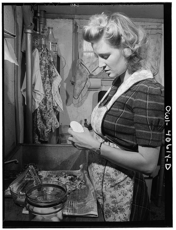 Washington, D.C. Lynn Massman, wife of a second class petty officer who is studying in Washington, preparing dinner