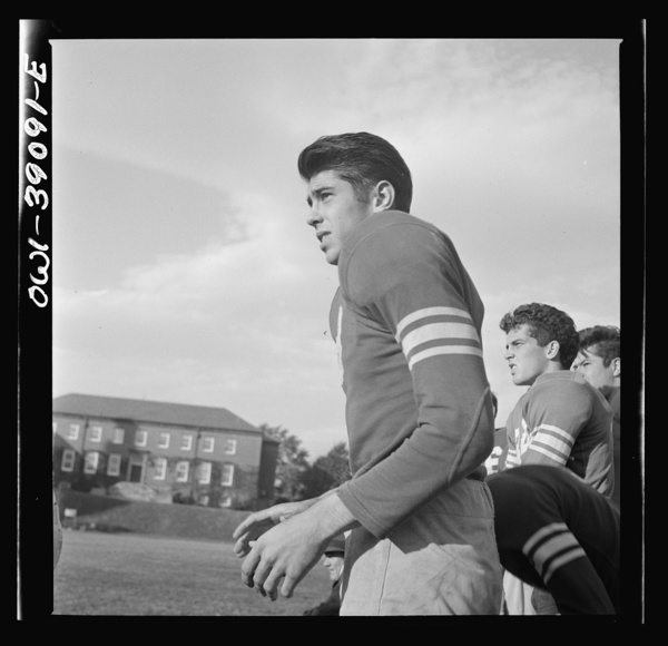 Washington, D.C. Members of the Woodrow Wilson High School football team watching a game from the sidelines