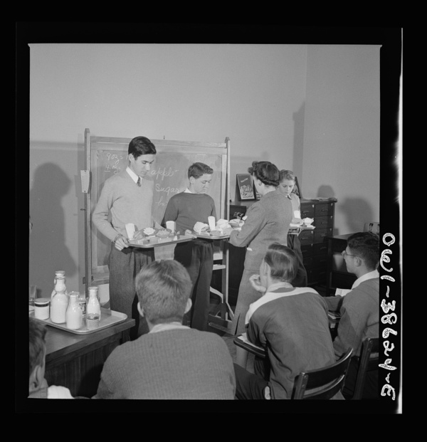 Washington, D.C. Mrs. Mary Spangler teaching a boys' class in nutrition at Woodrow Wilson High School