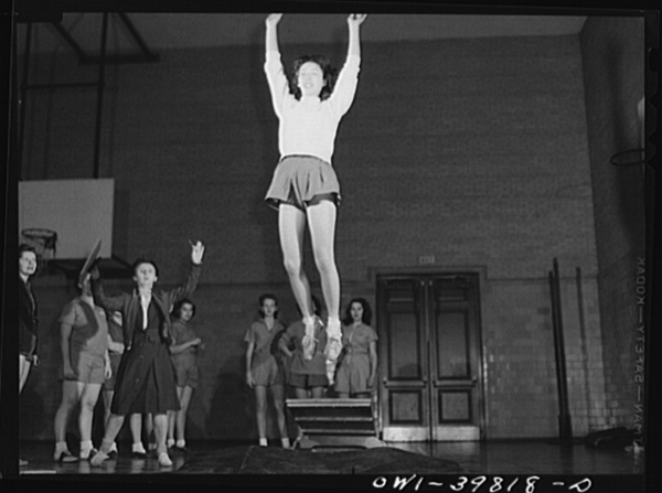 Washington, D.C. Physical education class doing mass exercises in the gymnasium at Woodrow Wilson High School