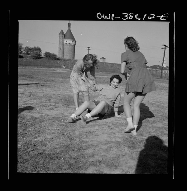Washington, D.C. Playing soccer in a physical education class at Woodrow Wilson High School