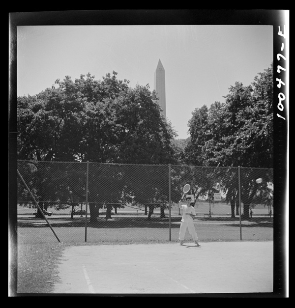 Washington, D.C. Playing tennis in the park in front of the U.S. Department of Commerce building on Sunday afternoon