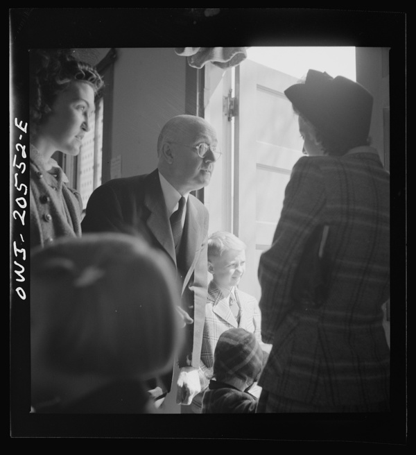 Washington, D.C. Reverend Foot greeting members of his congregation after services at the First Wesleyan Methodist church