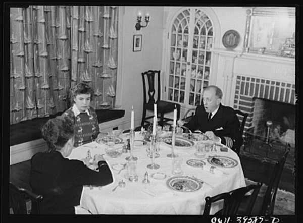Washington, D.C. Sally Dessez, a student at Woodrow Wilson High School, having dinner at home with her father and her aunt