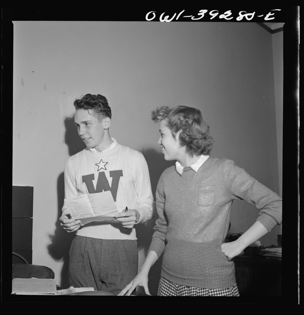 Washington, D.C. Sally Dessez, editor of the Woodrow Wilson High School yearbook, talking with Walter Spangenberg in the publications office