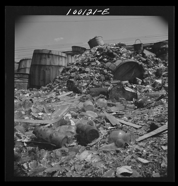 Washington, D.C. Scrap salvage campaign, Victory Program. Pieces of glass and porcelain which are useless for scrap were found among other obejcts unloaded in wholesale junkyard