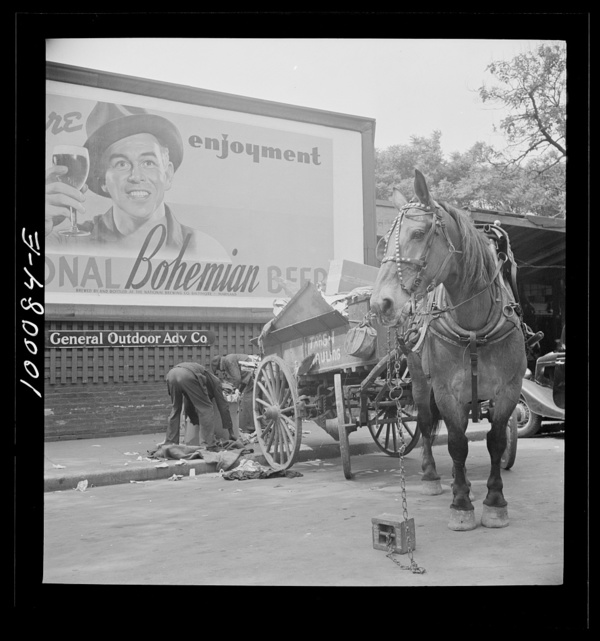 Washington, D.C. Scrap salvage campaign, Victory Program. This wagon has been used to collect scrap. It is parked outside a retail junk yard