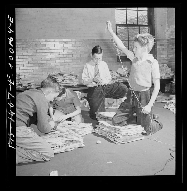 Schoolboys go voluntarily from house to house collecting scrap paper in connection with the campaign in the District schools. Washington, D.C.