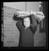Washington, D.C. Scrap salvage campaign, Victory Program. Washington schoolchild brings a load of scrap paper to school once a week. Here it is collected by paper company truck
