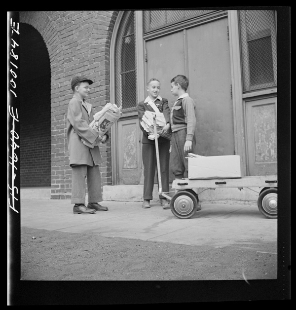 Washington, D.C. Scrap salvage campaign, Victory Program. Children bringing their weekly contribution of scrap paper to school