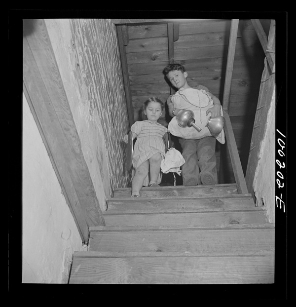Washington, D.C. Scrap salvage campaign, Victory Program. These children are bringing piles of rags and metal objects down from an attic to contribute to the scrap collecting campaign