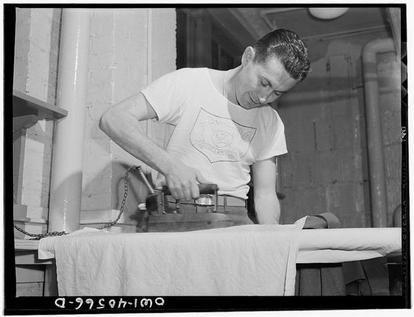 Washington, D.C. Servicemen using the laundry facilities in the sub-basement of the United Nations service center. It is not necessary to engage a hotel room in order to use these accommodations