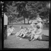 Washington, D.C. Audience of wives watching their husbands play amateur baseball on a diamond near Lincoln Memorial on Sunday. Woman in the rear left is keeping score