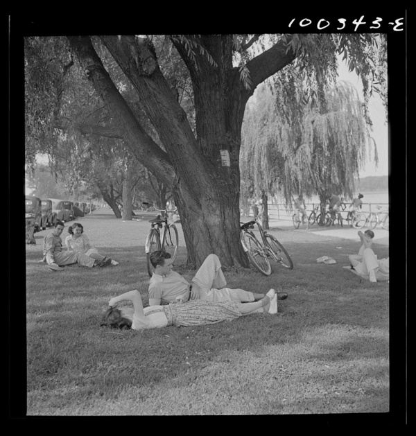 Washington, D.C. Old and young watching sailboats at Haines Point i.e. Hains Point