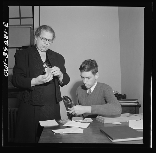 Washington, D.C. Sally Dessez, editor of the Woodrow Wilson High School yearbook, talking with Walter Spangenberg in the publications office