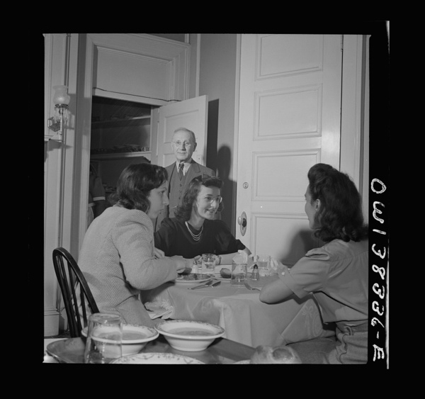 Washington, D.C. The proprieter of this boardinghouse watches the service at dinner
