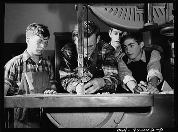 Washington, D.C. A class in wood shop at Woodrow Wilson High School