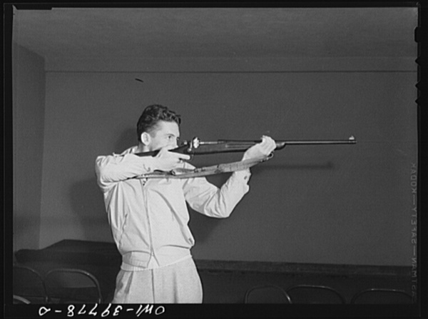 Washington, D.C. Walter Spangenberg, a member of the Woodrow Wilson High School rifle club, is working on shooting from a standing position