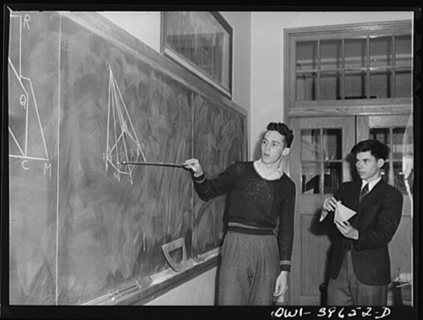 Washington, D.C. Walter Spangenberg giving a demonstration in a solid geometry class at Woodrow Wilson High School