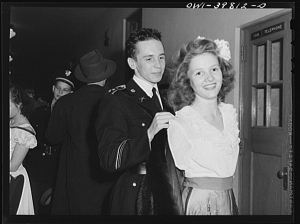 Washington, D.C. Walter Spangenberg helps his date on with her coat after the regimental ball at Woodrow Wilson High School