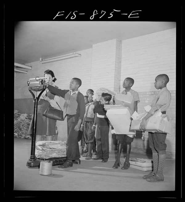 Washington, D.C. Weighing collected scrap paper at a grammar school