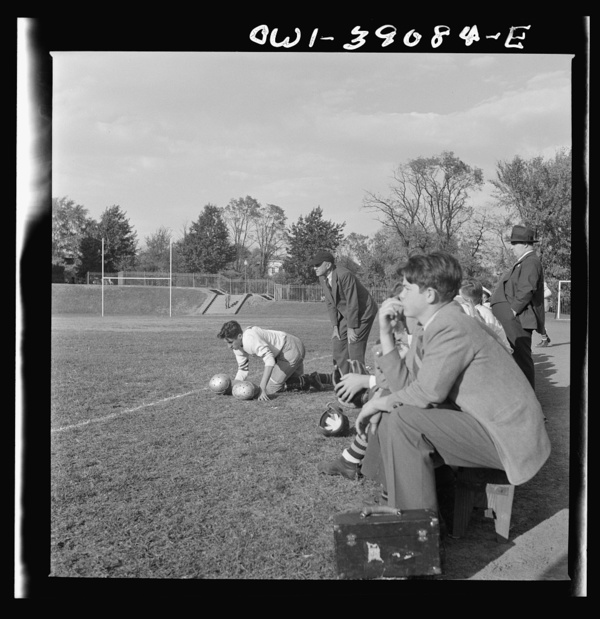 Washington, D.C. Woodrow Wilson High School manager watching a football game from the sidelines