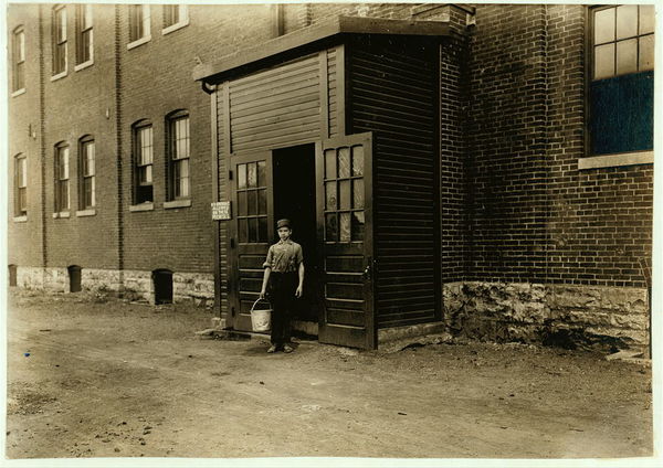 Water Boy in an Indianapolis Furniture Factory. Aug., 1908. Wit., E. N. Clopper. Location: Indianapolis, Indiana.