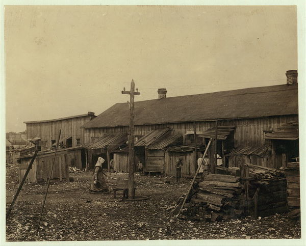 "We give them houses to live in." About 50 persons housed in this miserable row of dilapidated shacks located on an old shell-pile and partly surrounded by a tidal marsh. Maggioni Canning Co. Location: Port Royal, South Carolina.