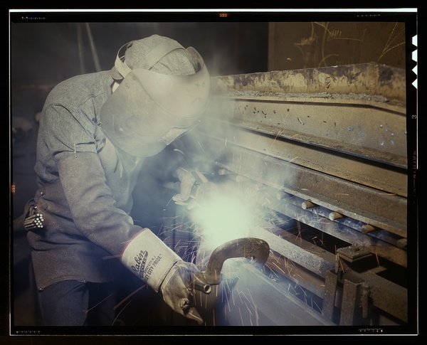 Welder making boilers for a ship, Combustion Engineering Co., Chattanooga, Tenn.