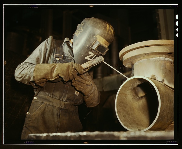 Welder making boilers for a ship, Combustion Engineering Co., Chattanooga, Tenn.