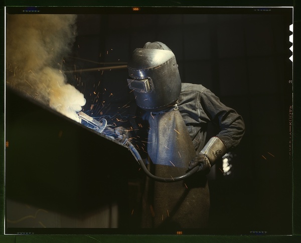 Welder making boilers for a ship, Combustion Engineering Co., Chattanooga, Tenn.