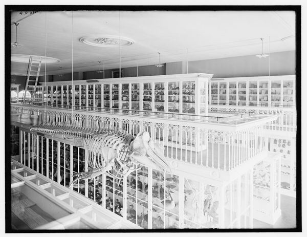 Whale skeleton and bird exhibits, East India Marine Hall, Peabody Museum of Salem, Salem, Mass.