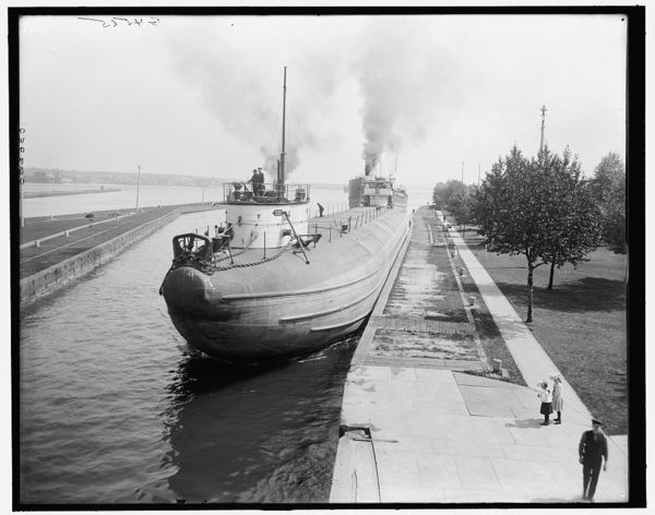 Whaleback entering Weitzel Lock, Sault Sainte Marie, Mich.