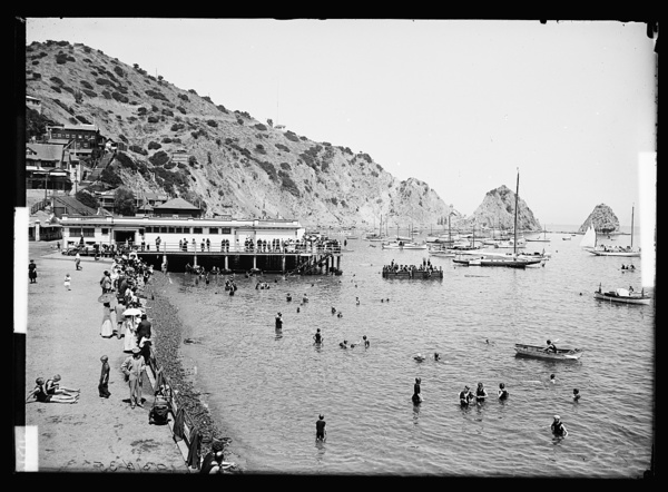 Wharf and beach, Avalon, Catalina Island, Calif.