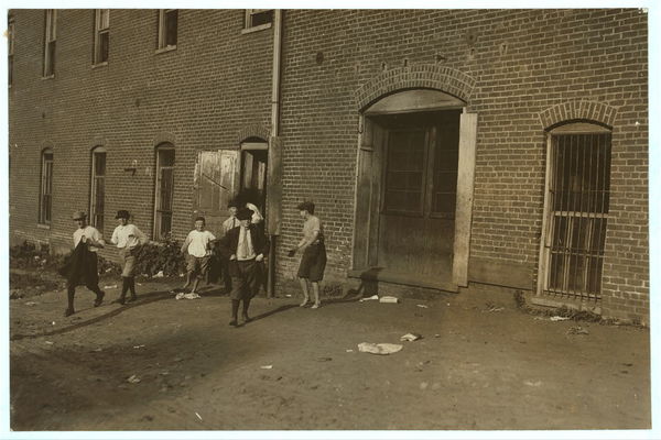 Some of the young girls who roll cigarettes in the Danville (Va.) Cigarette Factory. I could not induce the very smallest ones to get into the photos. See other photos taken at noon and in the morning. Location: Danville, Virginia.