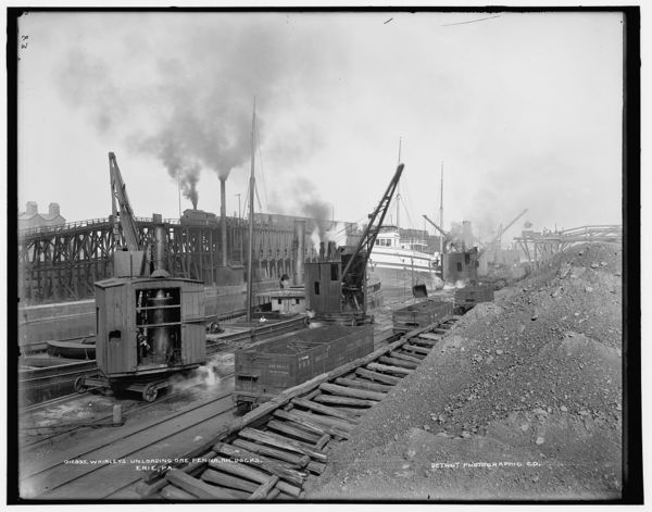 Whirleys unloading ore, Penna. R.R. Pennsylvania Railroad docks, Erie, Pa.