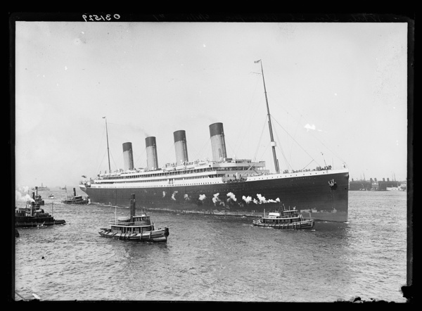 White Star S.S. Olympic guided in by tugboats Geo. K. Kirkham and Dowmer