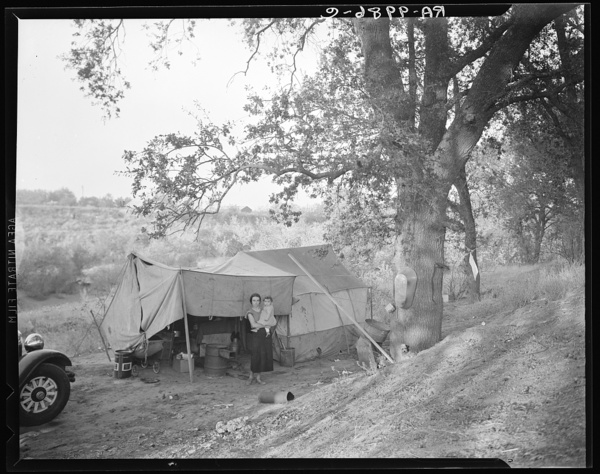 Wife and child of migrant worker, encamped near Winters, California. This is a proposed location of Resettlement Administration migrant camp