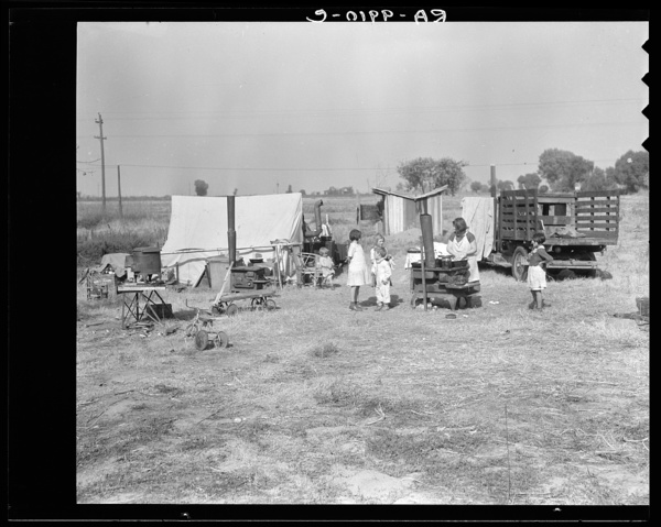 Wife and five children of migratory fruit worker. American River camp on outskirts of Sacramento, California. Have worked in the fruit since 1931. "We don't make a living, but we live on what we make"