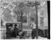 Katharine Wright, Harriet Silliman, and Agnes Osborne in horse-drawn carriage across from Wright home, 7 Hawthorn Street, Dayton, Ohio