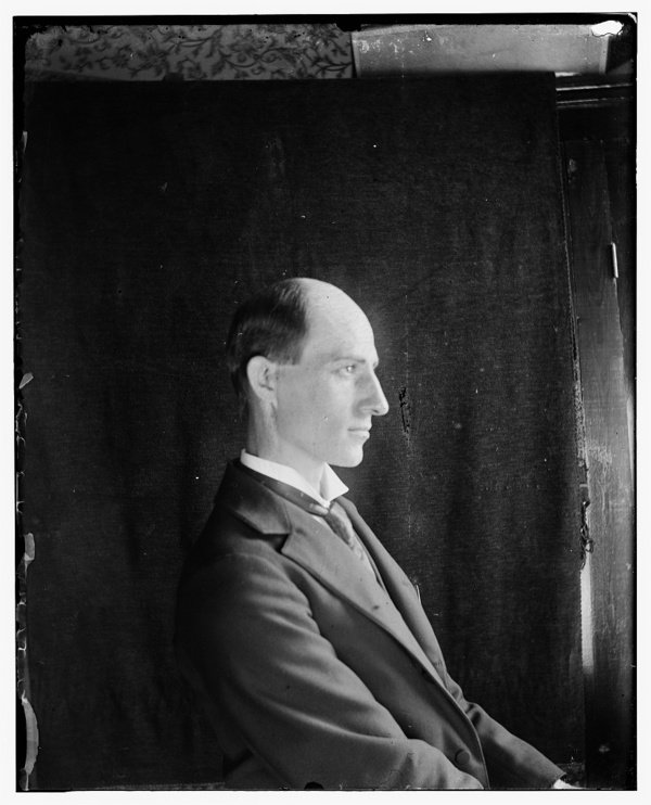 Wilbur Wright, age 30, seated facing right, half-length side view