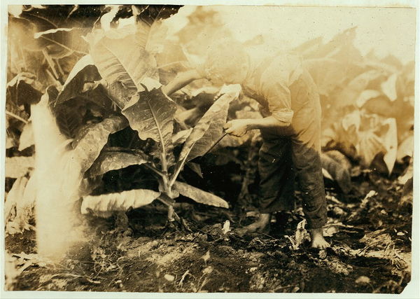 Willie Fugate cutting tobacco. See 4489. Location: Hedges Station, Kentucky / Lewis W. Hine.