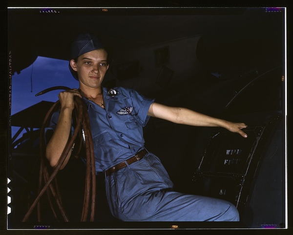 With a woman's determination, Lorena Craig takes over a man-size job, Corpus Christi, Texas. Before she came to work at the Naval air base she was a department store girl. Now she is a cowler under civil service