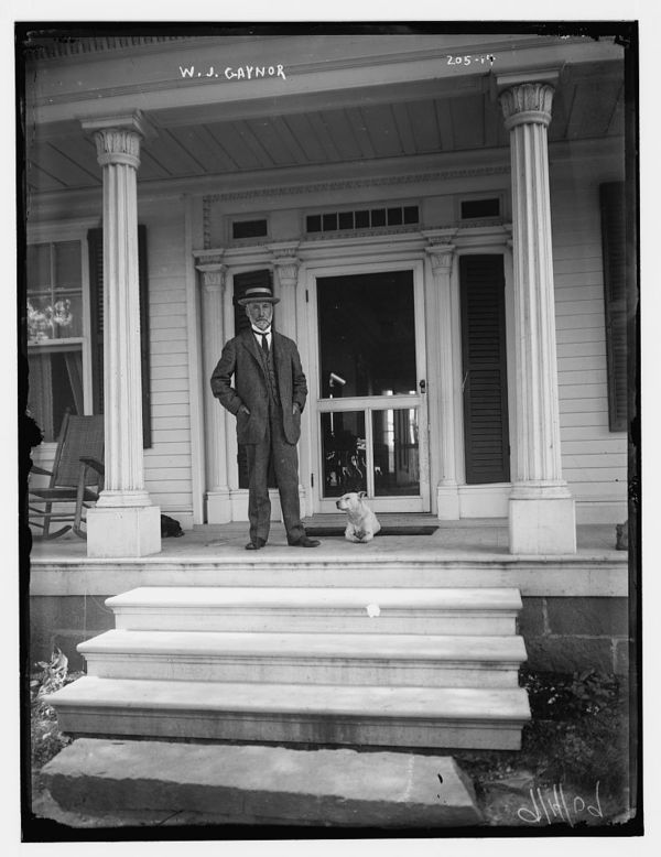 W.J. Gaynor's daughter, Marion Gaynor, and her pet crow, "Pete"