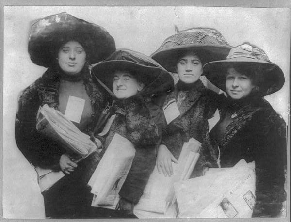 Women strikers selling newspapers for a living. New York shirt waist workers strike