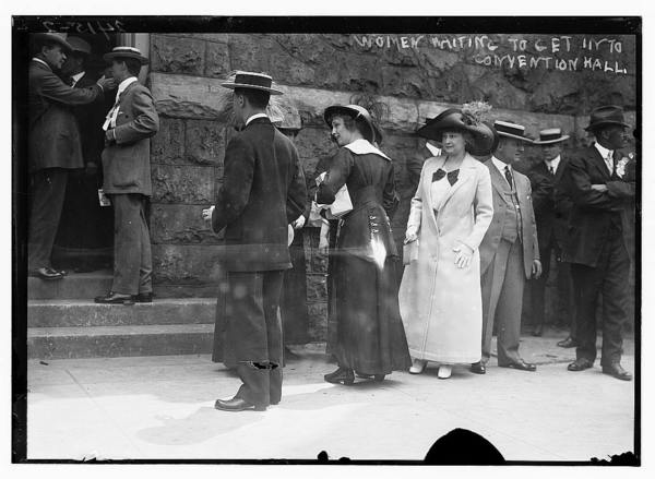 California delegates cheering on stagecoach at the 1912 Republican National Convention held at the Chicago Coliseum, Chicago, Illinois, June 18-22, 1912
