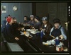 Women workers employed as wipers in the roundhouse having lunch in their rest room, C. & N.W. R.R., Clinton, Iowa