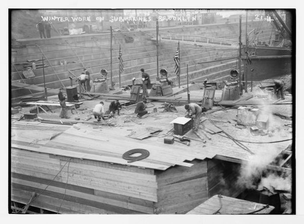 Work on submarines, winter, Brooklyn
