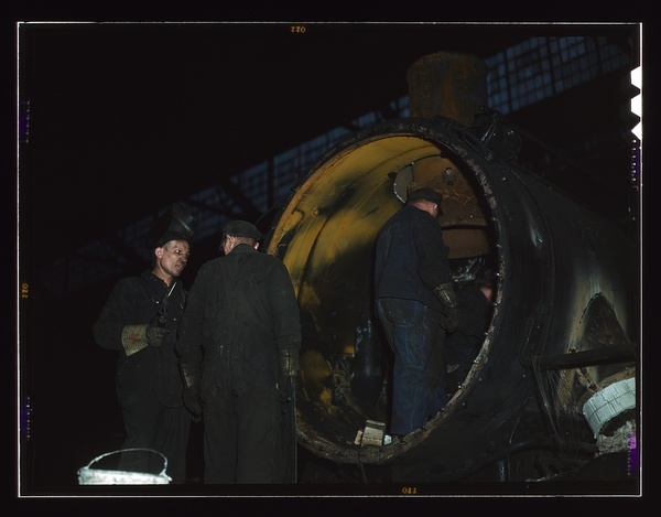 Working on the boiler of a locomotive at the 40th Street shops of the C & NW RR, Chicago, Ill.