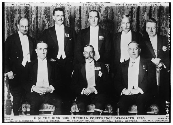 W.S. Monroe, J.G. Coates, Stanley Bruce, Gen. B. Hertzog, W.T. Cosgrave -- King Geo. With Imperial Conf. delegates, 1926